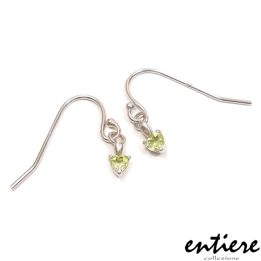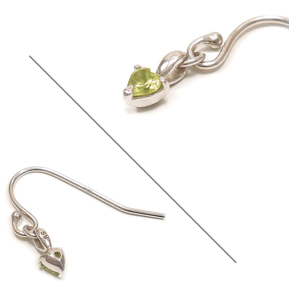 写真では少し分かりづらいですが、小さなハートシェイプにカットされた、8月の誕生石:ペリドットのピアスです。