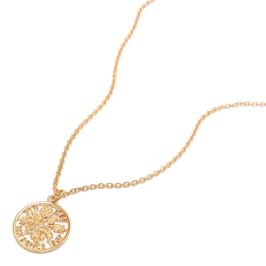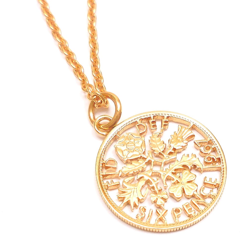 イギリスでラッキーアイテムとして人気の「幸せの6ペンスコイン」。その本物のコインから加工して作られたペンダント・ネックレスです。