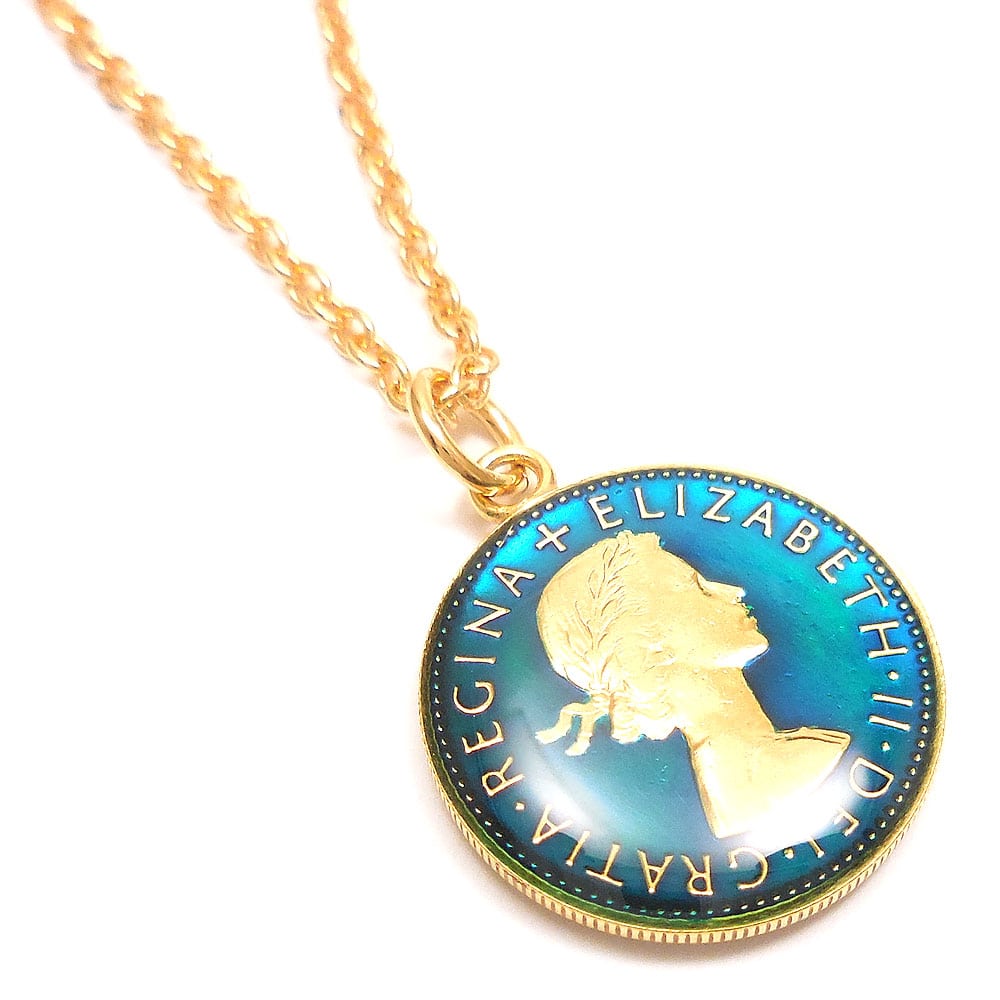 コインの図柄は、片側はUKを構成する4つの国を象徴する植物、イングランドのチューダー・ローズ:スコットランドのアザミ:アイルランドのシャムロック:ウェールズのリーキ(西洋ネギ)、反対側はエリザベス2世が描かれています。 トップはチェーンを通し直して、リバーシブルで使えますので、楽しみ方がちょっと増えるかも?