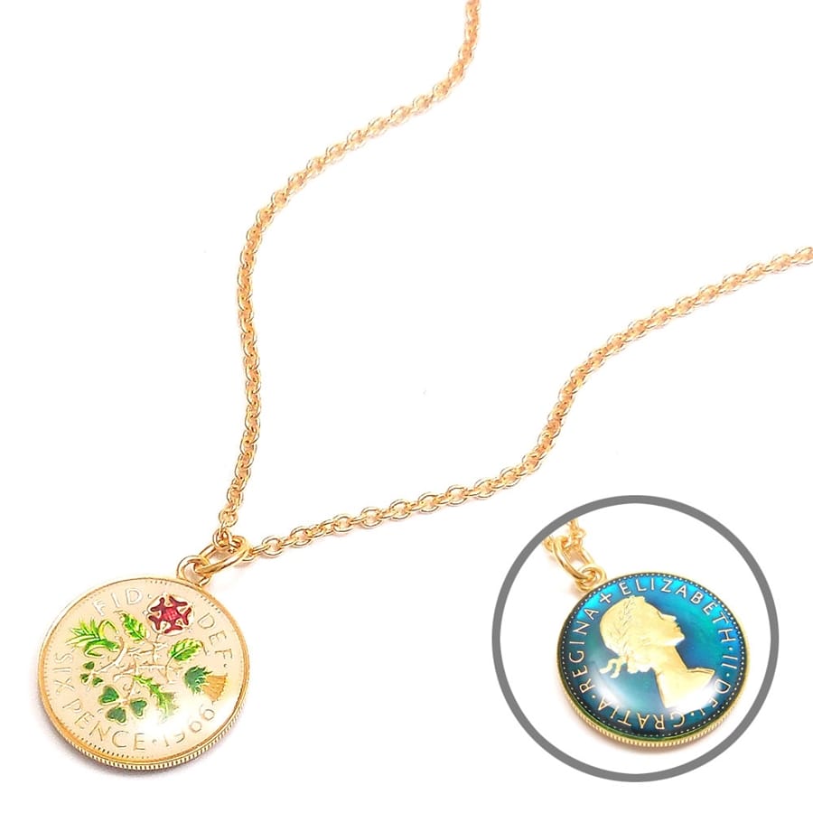 イギリスでラッキーアイテムとして人気の「幸せの6ペンスコイン」。その本物のコインから加工して作られたペンダント・ネックレスです。