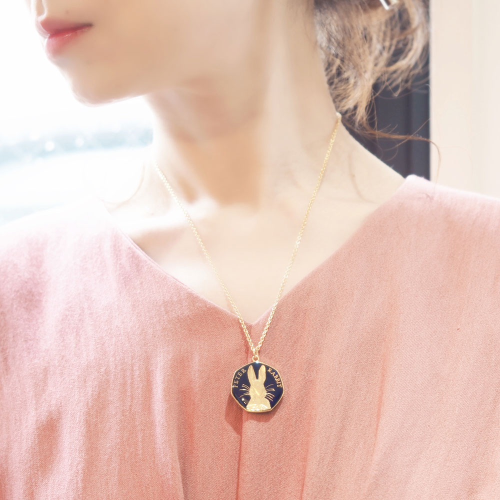 コインの両面はそれぞれピーターラビットの図柄とエリザベス2世の肖像です。コインのレリーフ部分を残し、イギリス王室公式カラーのロイヤルブルーでエナメル着色。角度によって濃淡の出るブルーがとても鮮やか。エナメルの色乗せはひとつひとつ、ち密な手作業で行われています。
