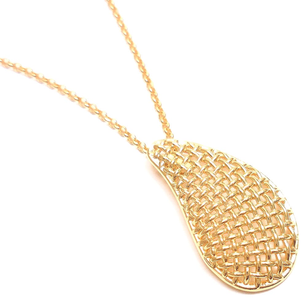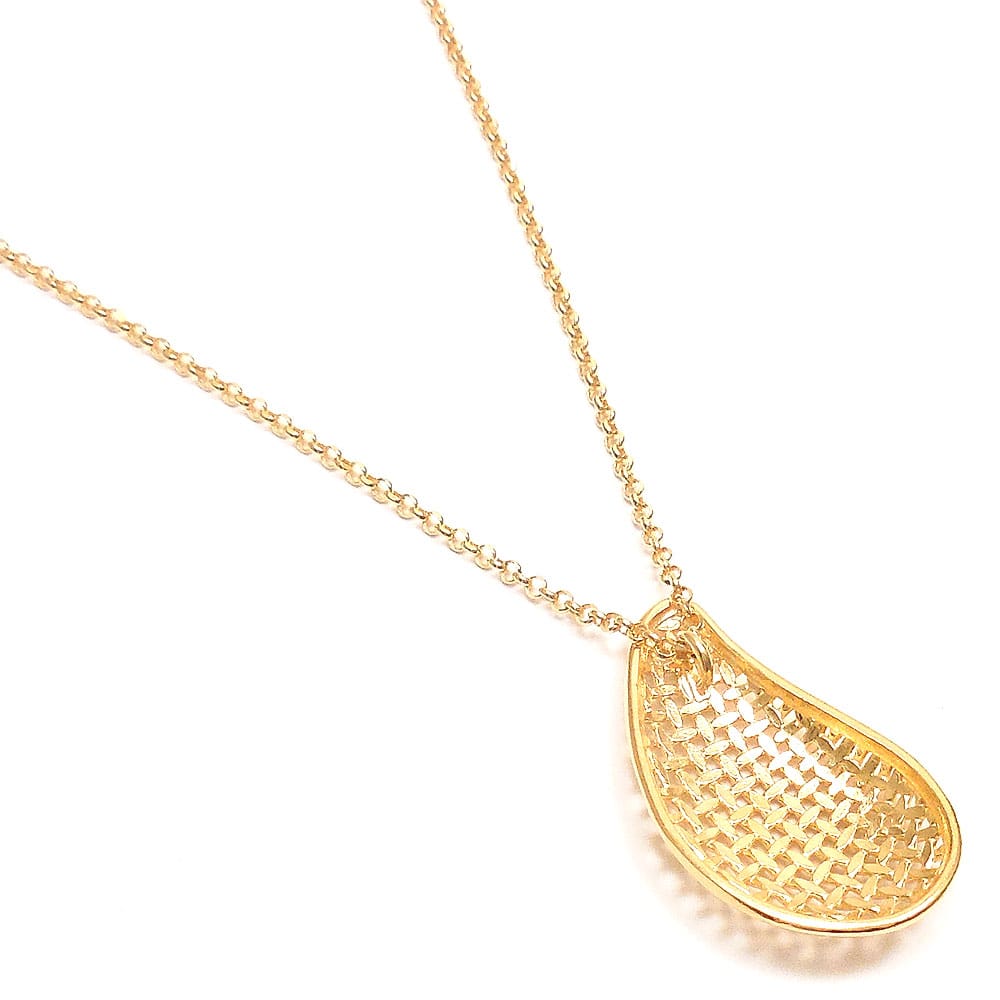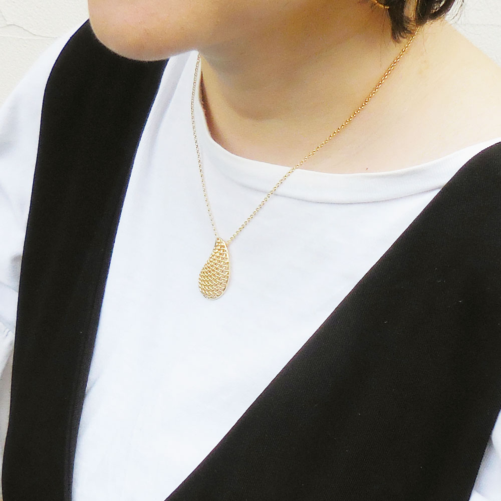 イタリア製、ふっくらと丸みがあって可愛らしいメッシュデザインのドロップチャームが目を引くペンダントネックレス。