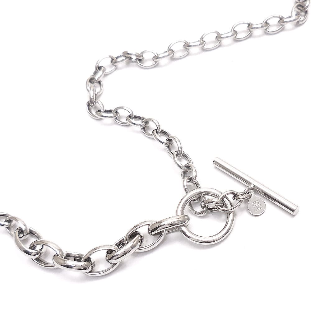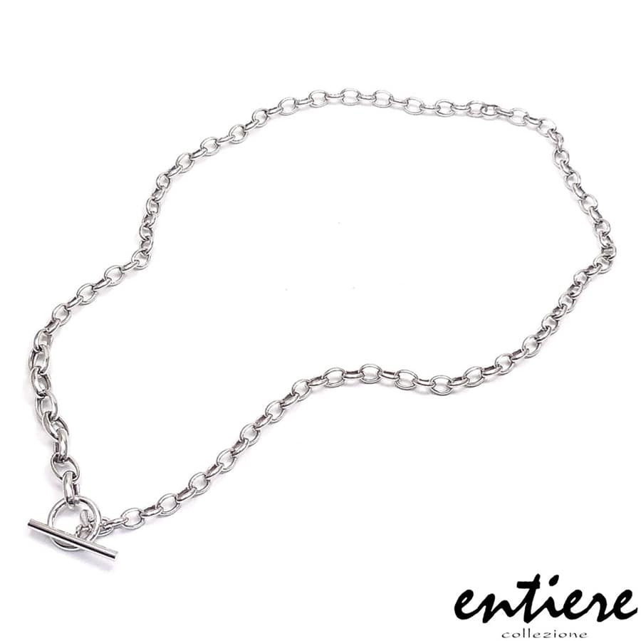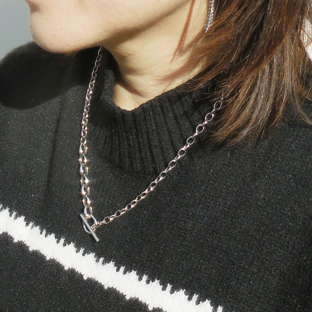 イタリア製、見た目もシンプルでどんなファッションにも合わせやすいTバータイプのシルバーネックレスです。