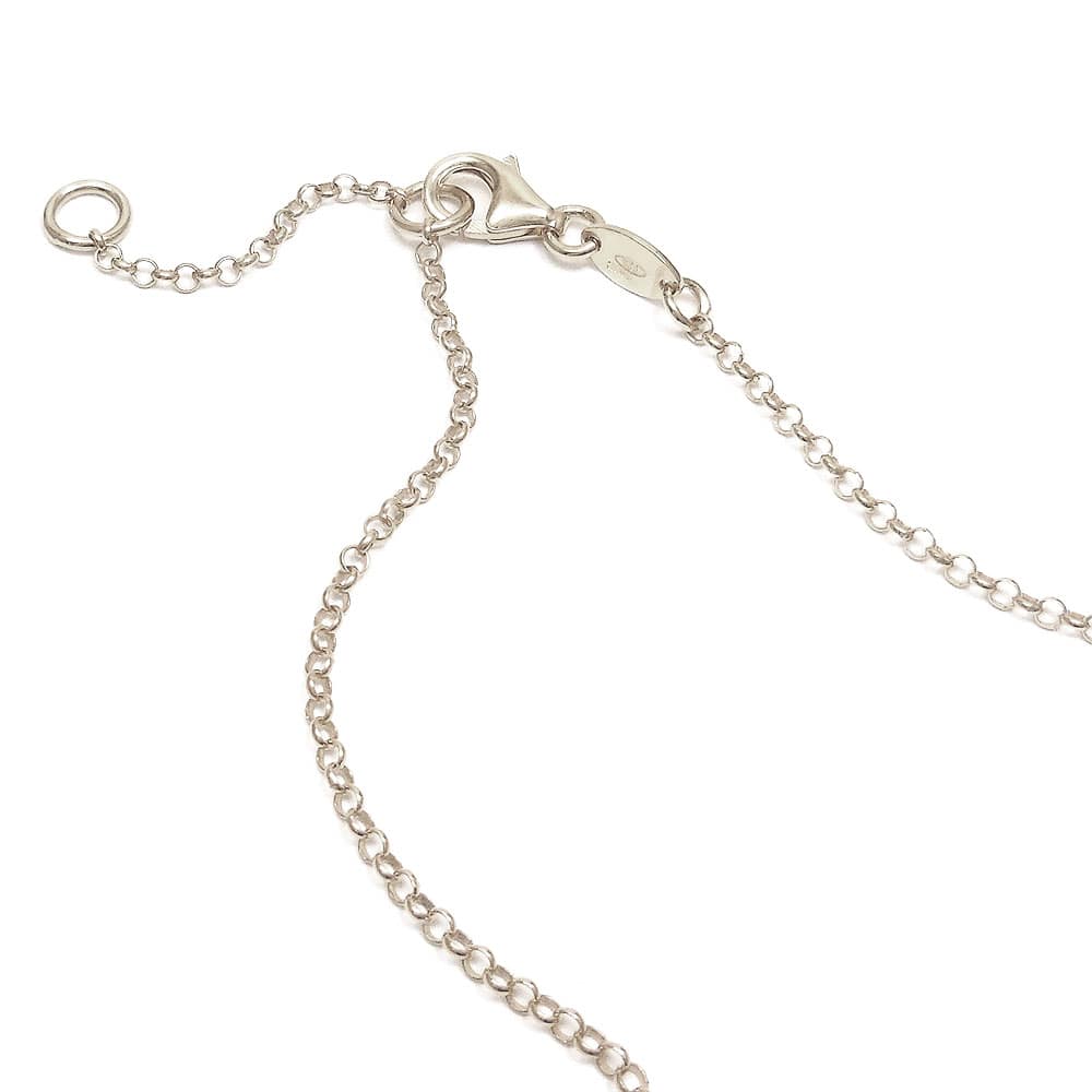 チェーンはシンプルなアズキチェーン。40cmと43cmの2パターンで留められます。