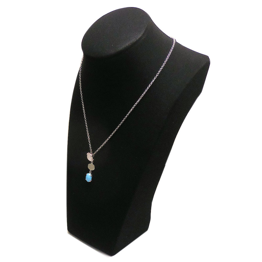 ファセットカットのローズクォーツとターコイズが揺れるペンダント・ネックレスです。