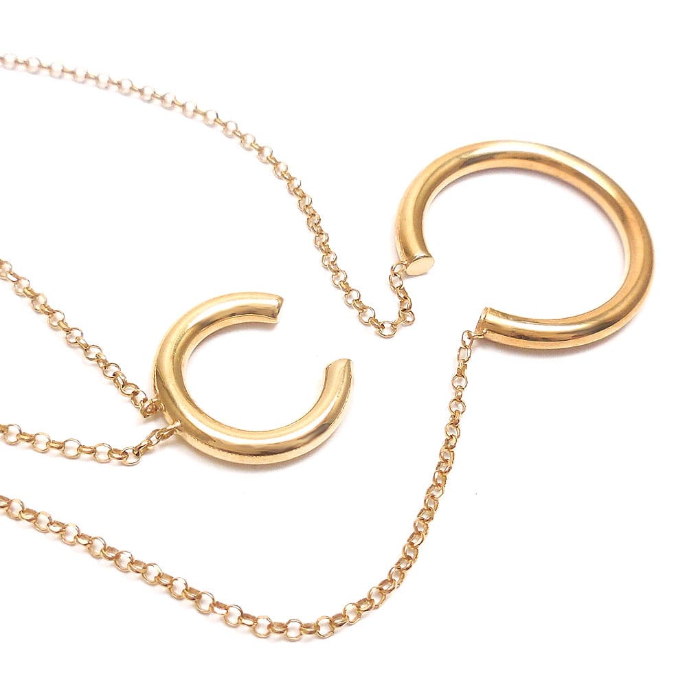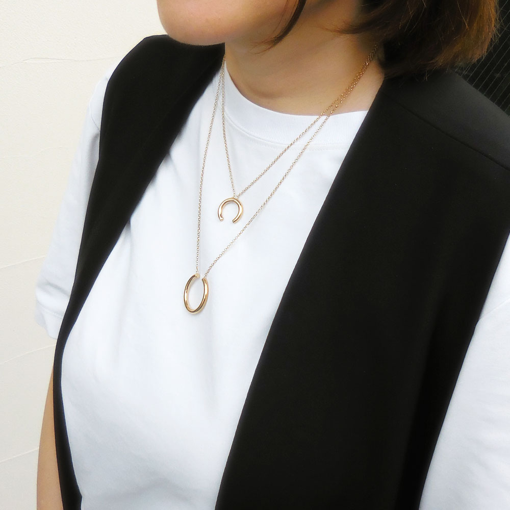 『Cの形のアレ』などとよく言われますが、正式名称は「ランドルト環」。シンプルなデザインの2連タイプ、重ね付けしなくても首回りはこれ1本でOKです。