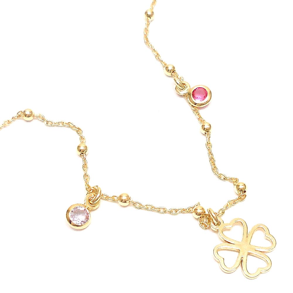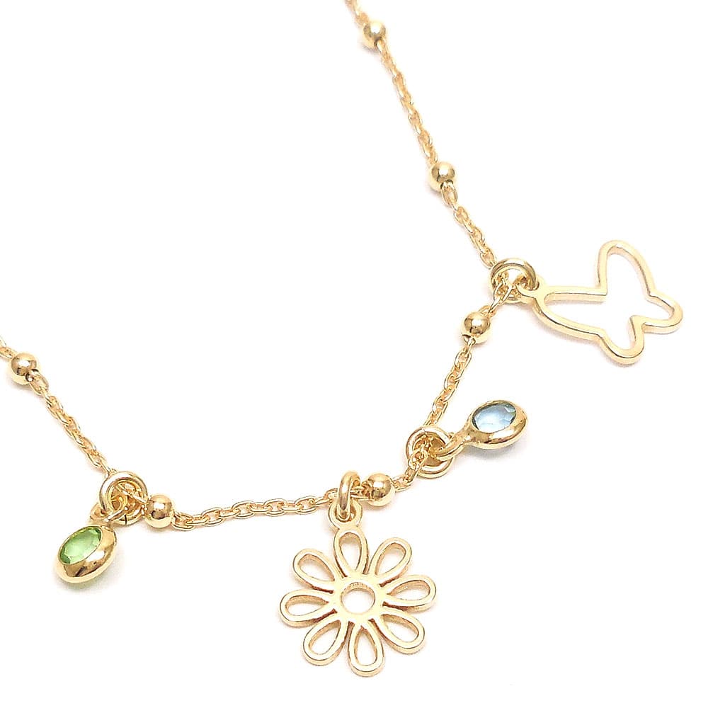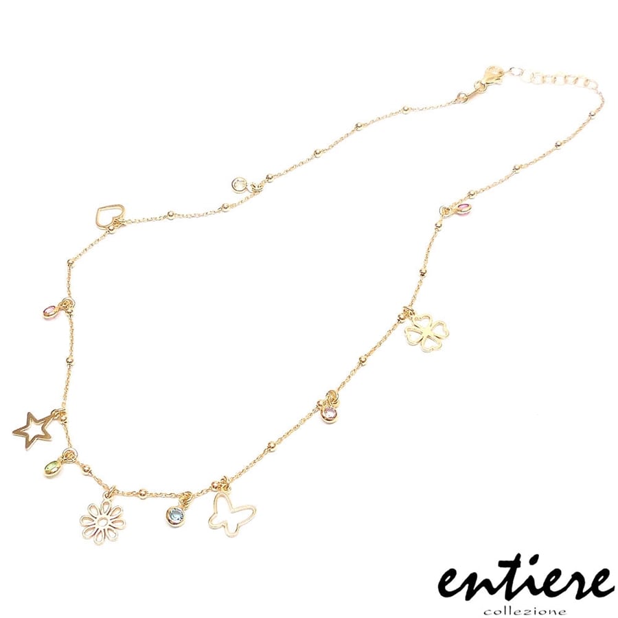 ハート・星・花・蝶・四つ葉のクローバーのオープンタイプのチャームはシンプルデザイン、クリスタルガラスが小さめでカラフル、そんなかわいいチャームたちが首回りを明るく演出。