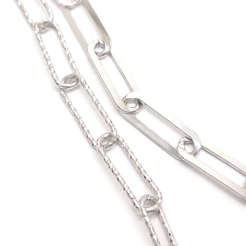 フラットタイプとカットデザイン、2種類それぞれ違った表情を見せてくれます。フラットタイプは鏡面仕上げで面で、カットデザインは細かいキラキラ感、シンプルな中にも変化を楽しめるアイテム。