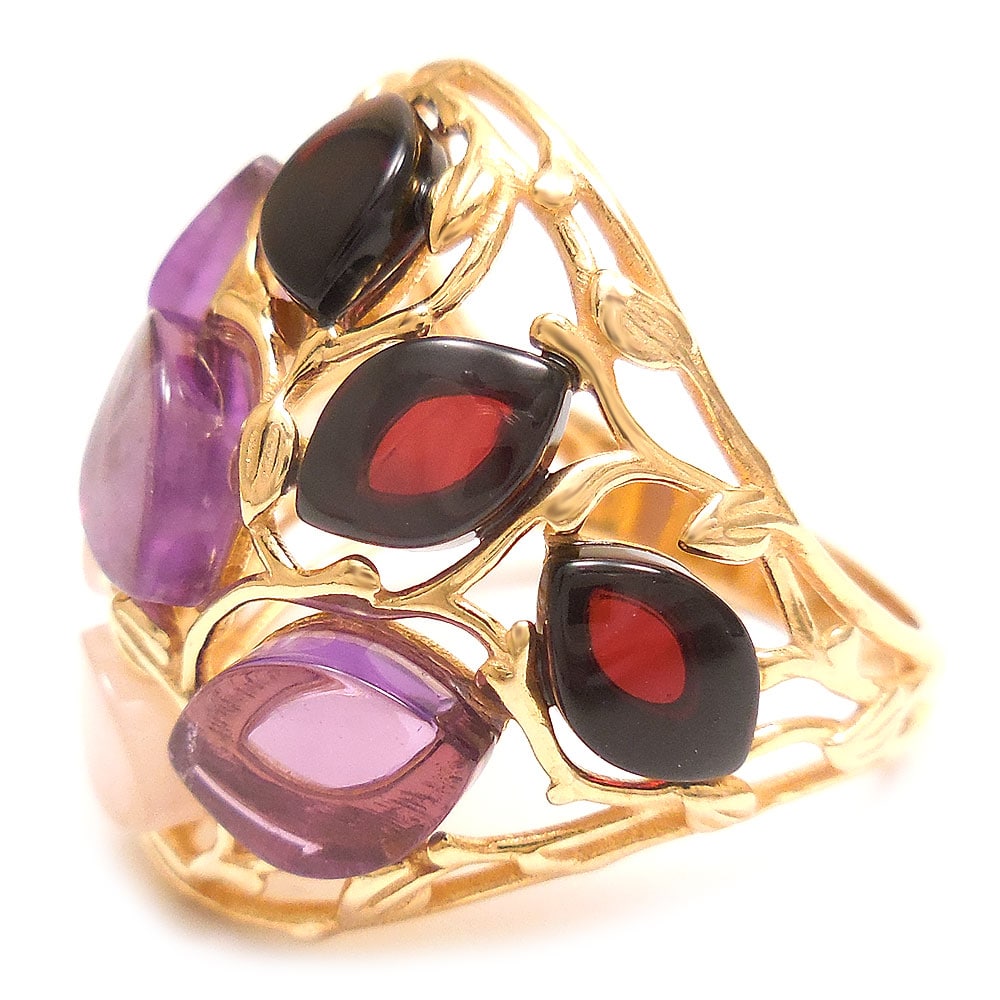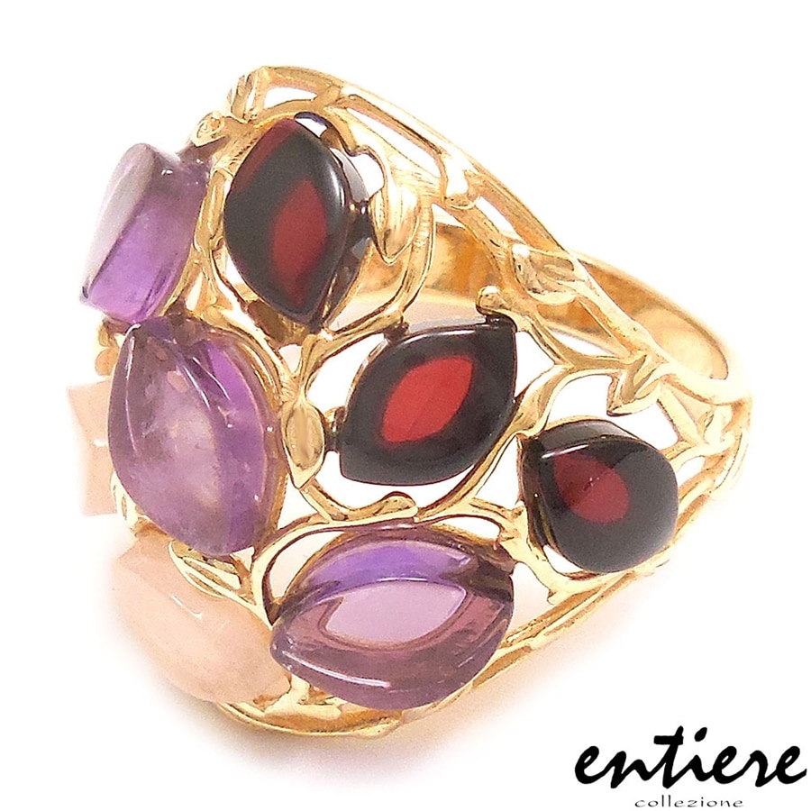 entiere アンティエーレ リング 13号 琥珀 アンバー アメジスト ローズクォーツ シルバー925 18金メッキ レディース