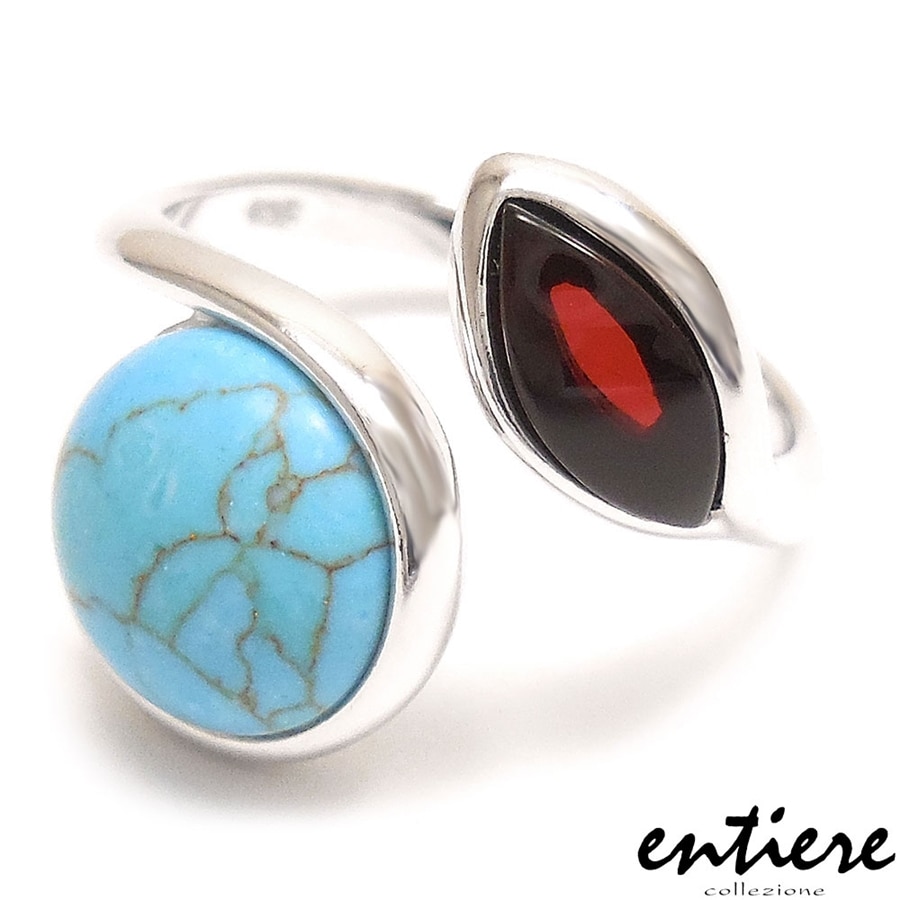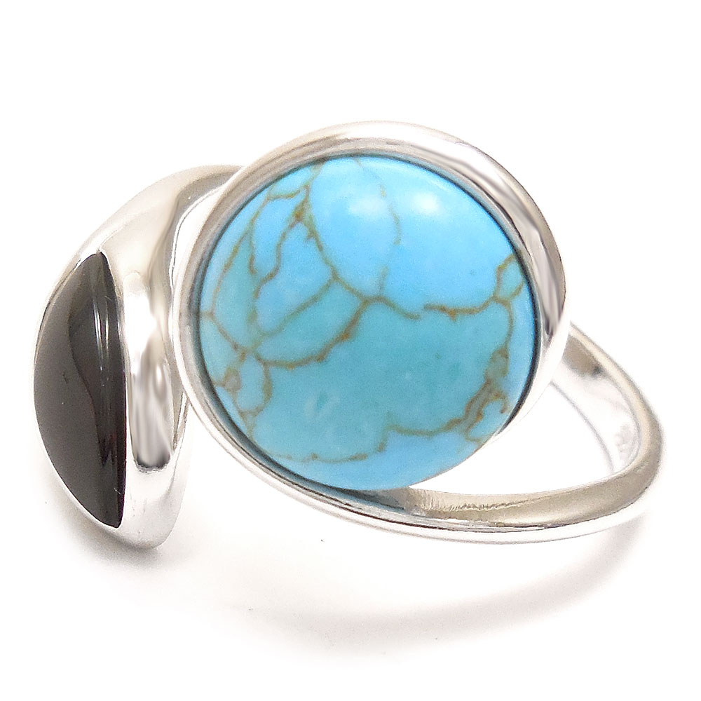 琥珀とターコイズを使った流線形デザインのシルバーリング。