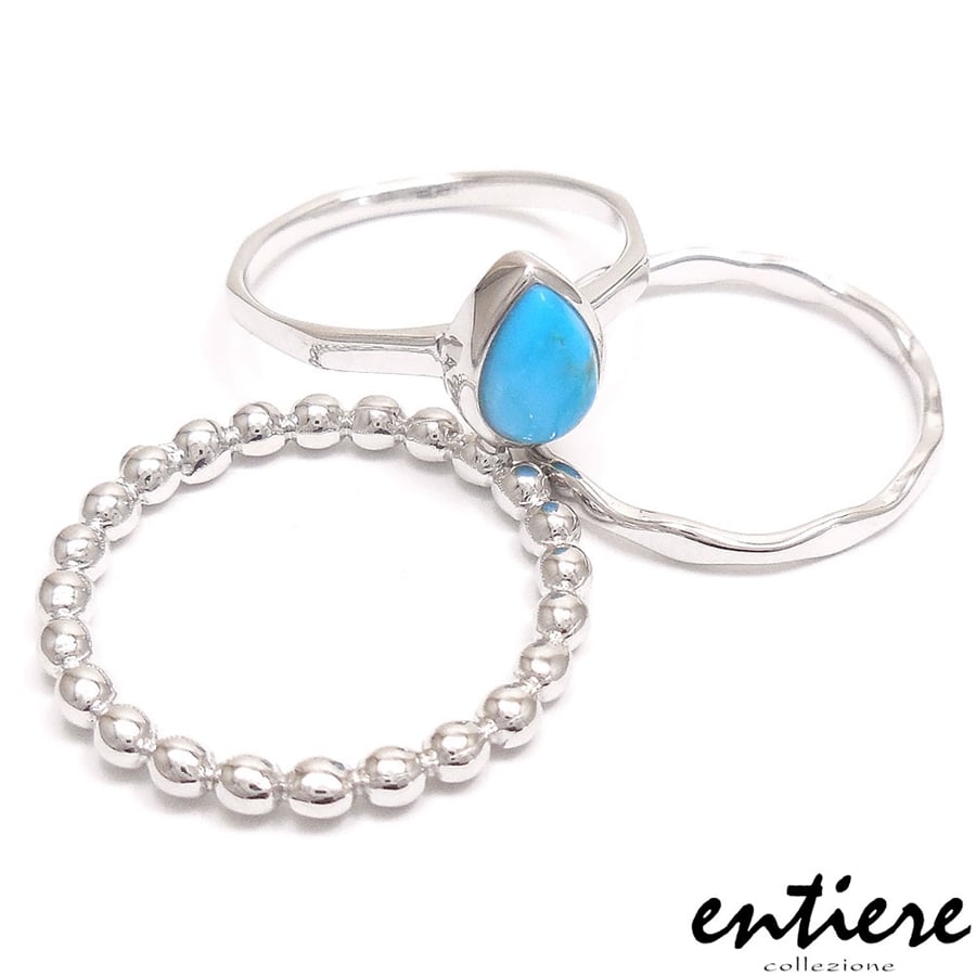 - > entiere アンティエーレ セットリング スタックリング 3連 ターコイズ ティアドロップ 13号 シルバー925 ロジウムメッキ レディース