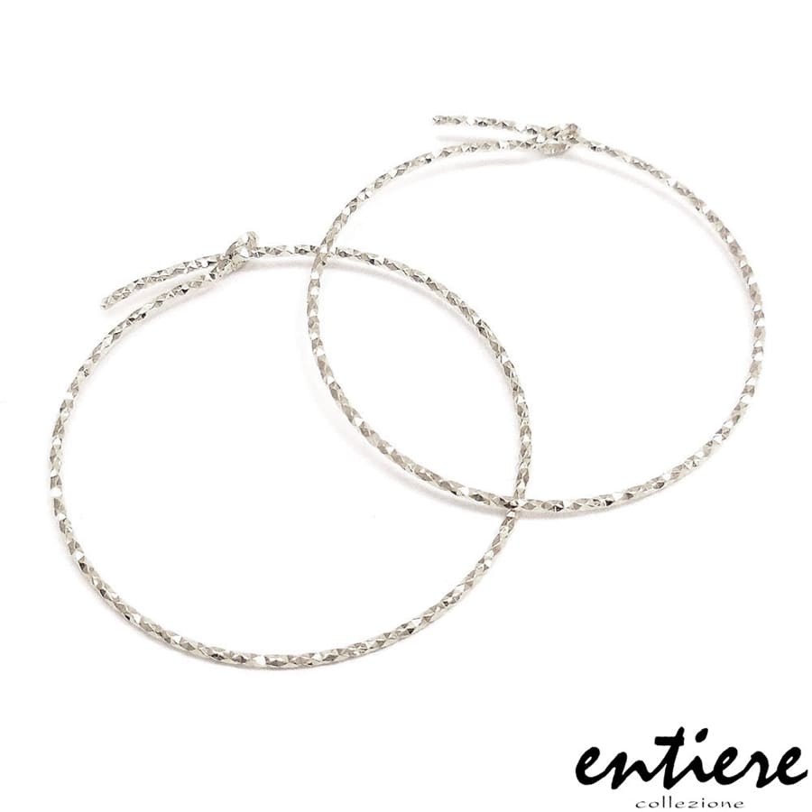 イタリア製、先端をもう片方の輪に通すだけの、キャッチレスタイプのワイヤーフープピアスです。