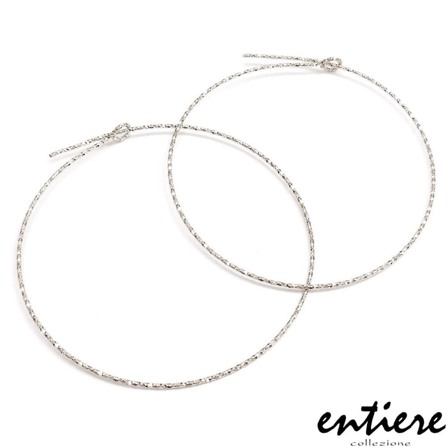 イタリア製、先端をもう片方の輪に通すだけの、キャッチレスタイプのワイヤーフープピアスです。