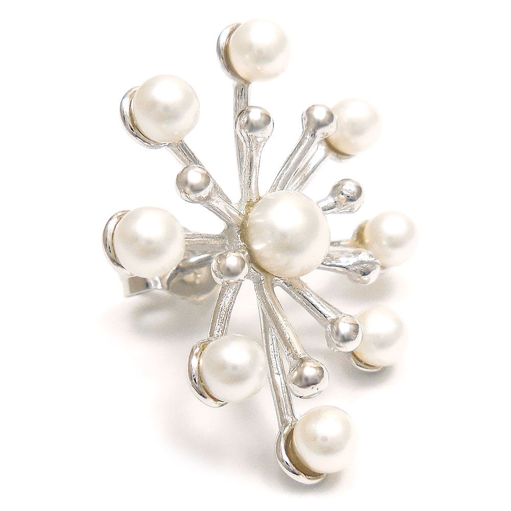 花火が夜空でパッと広がった一瞬のような、華やかさのある淡水パールピアスです。