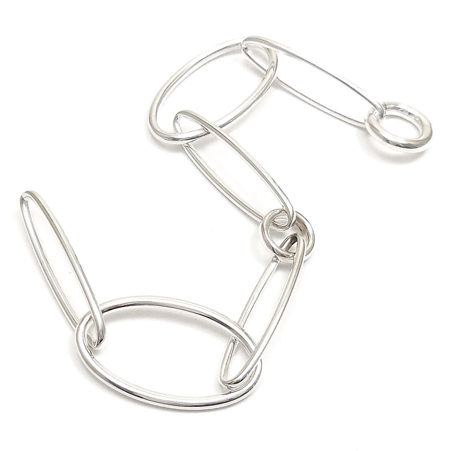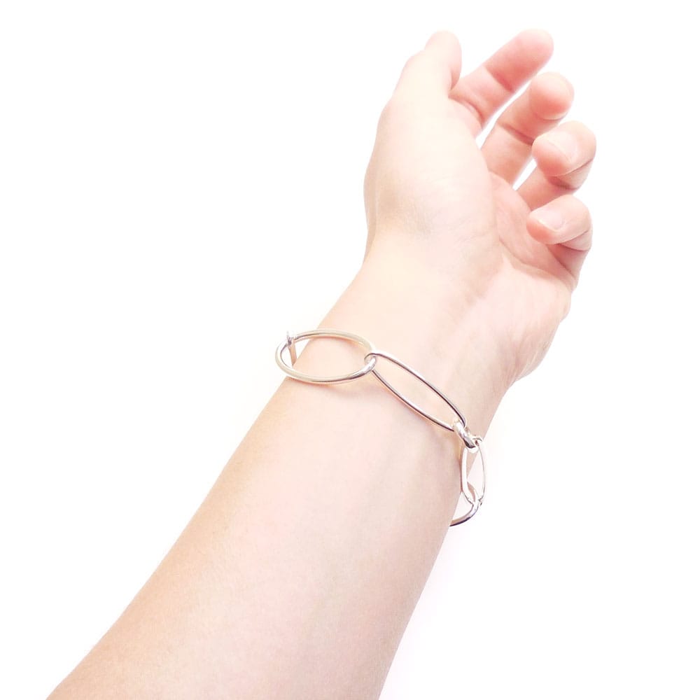 オーバル(だ円)型のパーツを使ったチェーンブレスレットです。