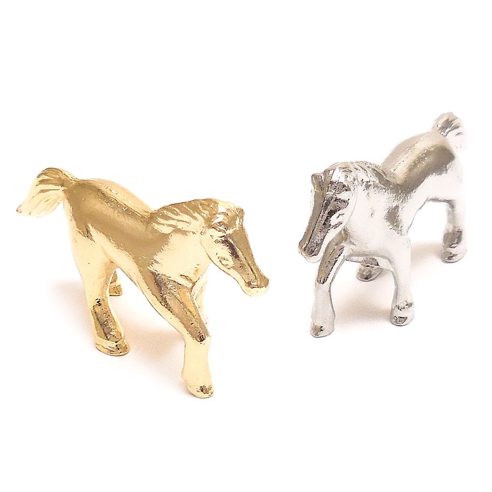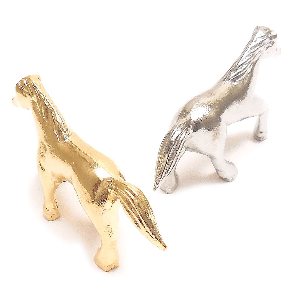 2026年の干支:午が、豪華なイメージの金色銀色でお料理のにぎやかさに一花添えてくれます。箸置きとしてだけでなく、玄関などのちょっとしたインテリアや、卓上でペーパーウェイトなどとしてもお使いいただけます。