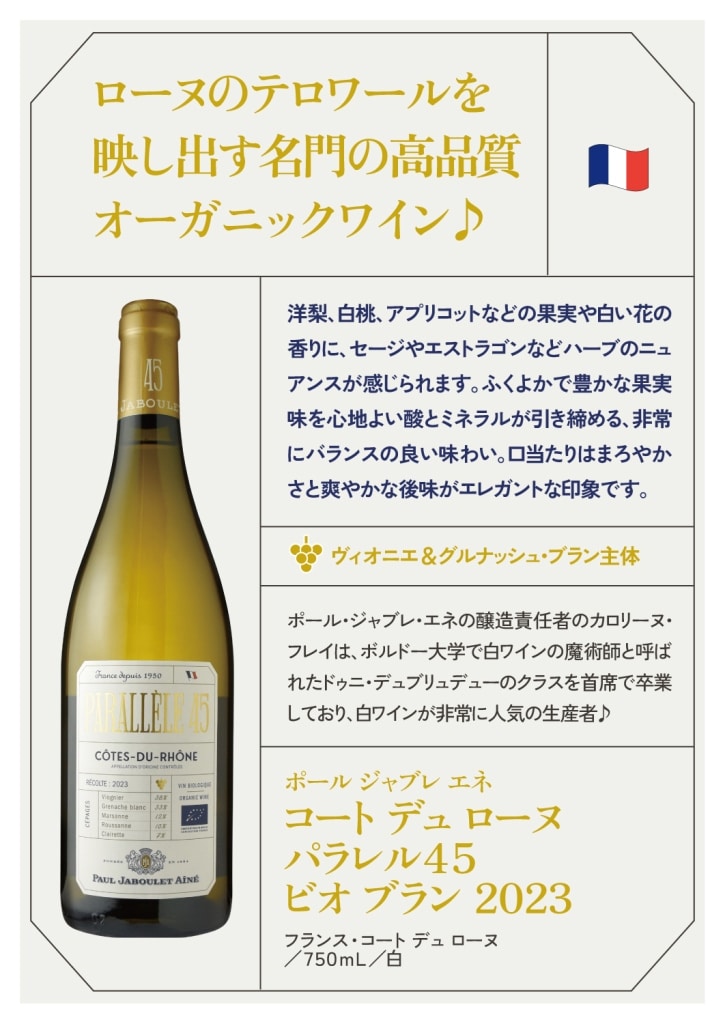 ![ポール・ジャブレ・エネ コート・デュ・ローヌ パラレル45 ビオ・ブラン[2023]](/img/0059/goods/D1/0059-3105717950550.jpg)