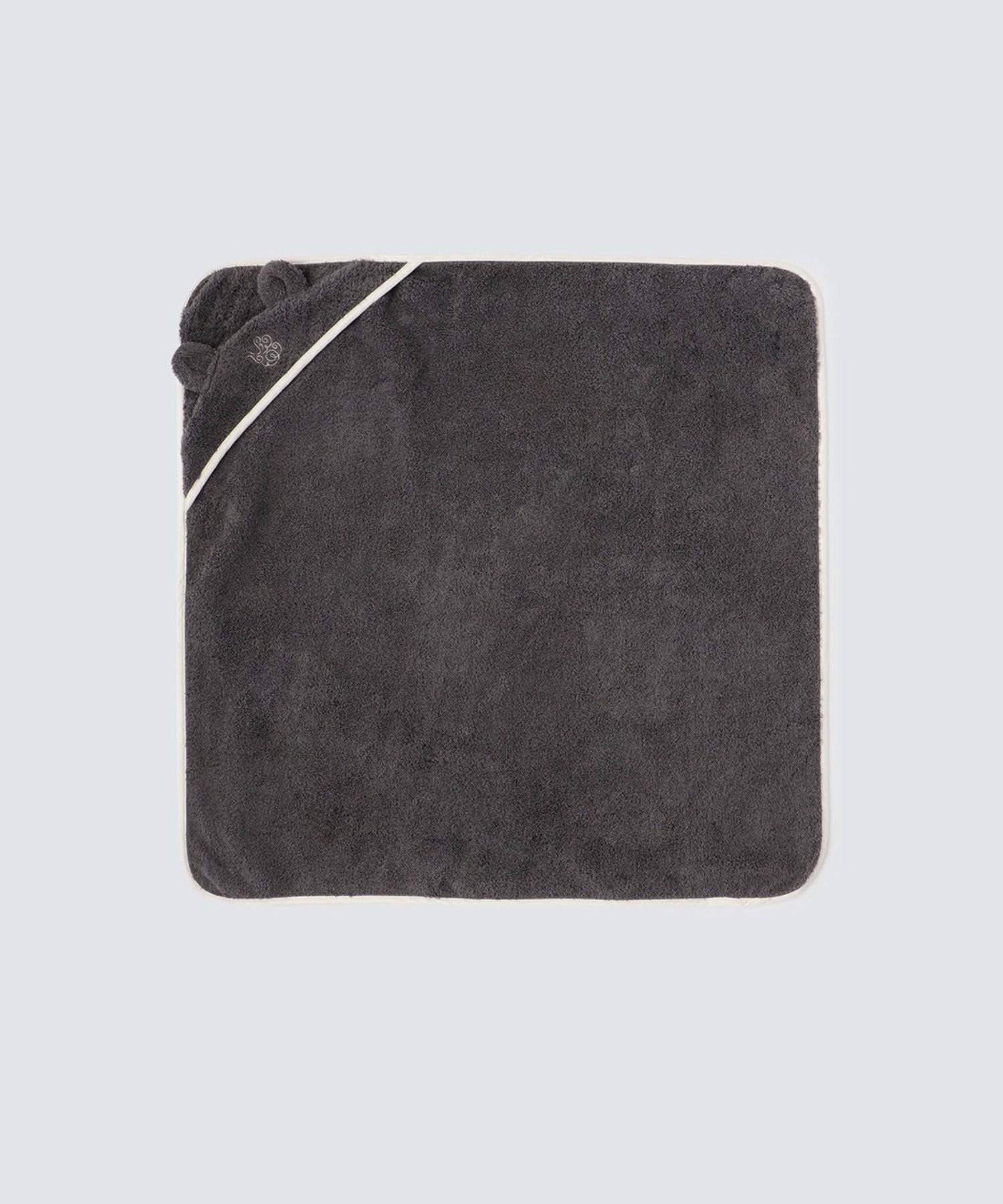 オーガニックコットン フード付きリボンおくるみ チャコールグレー