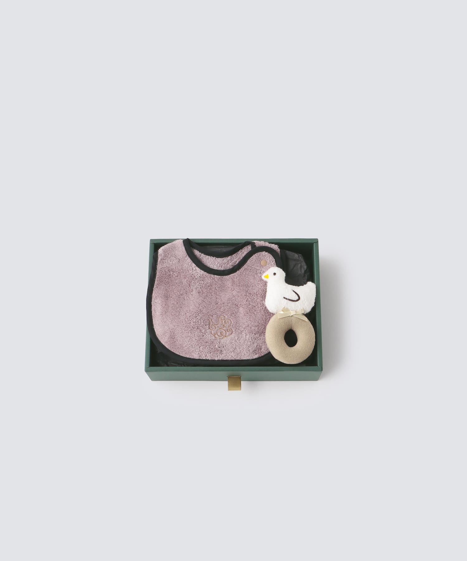 ベビーギフトセット(スタイ:ピンク、ガラガラ:ホワイト)