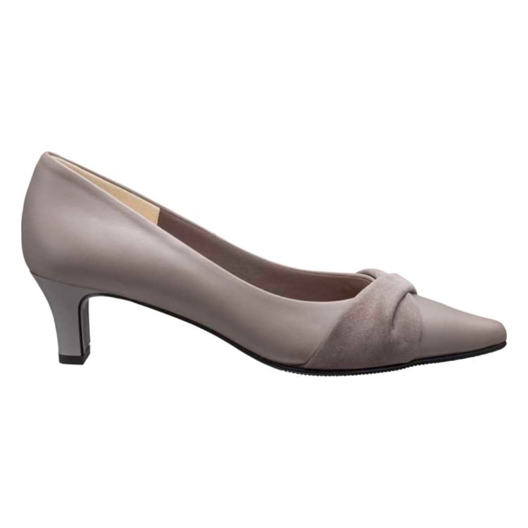 すっきりとしたポインテッドスクエアトウに、ドレープデザインをのせることで女性らしい柔らかな印象を与えてくれる1足。シンプルなデザインのため、オケージョンからデイリーまで幅広く活躍。