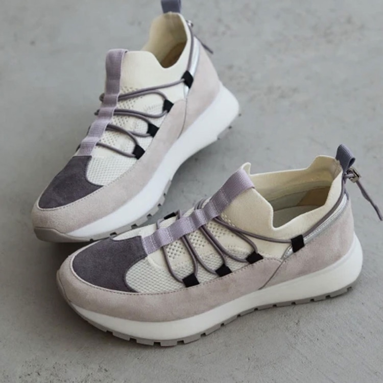 アウトドアテイストながらも、柔らかなカラーリングで仕上げることで、きれいめな装いにも馴染む一足に。