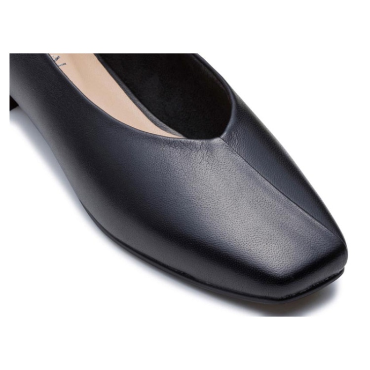 ソフトなスクエアトウに切り替えデザインを加え、履き口をやわらかなVラインにすることですっきりとした印象。