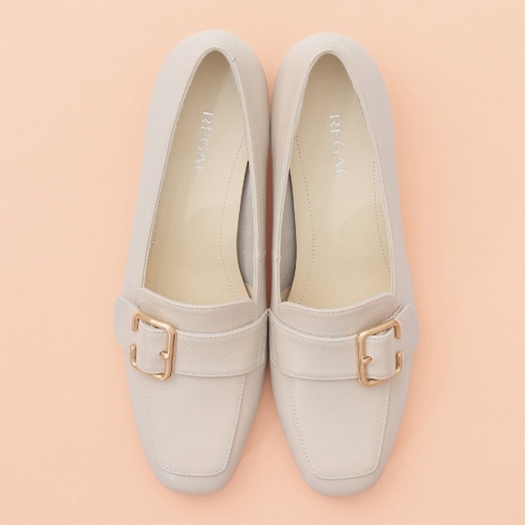■フォルムにこだわったデザインベルト付きモカパンプス。