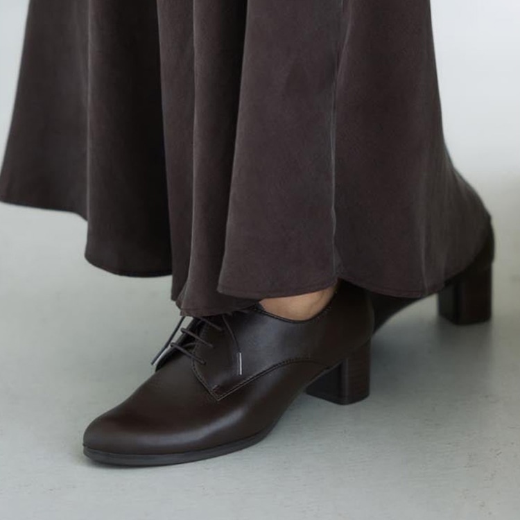 45mmのヒールにレースアップで甲のフィット感を調整することで安定感のある履き心地です。