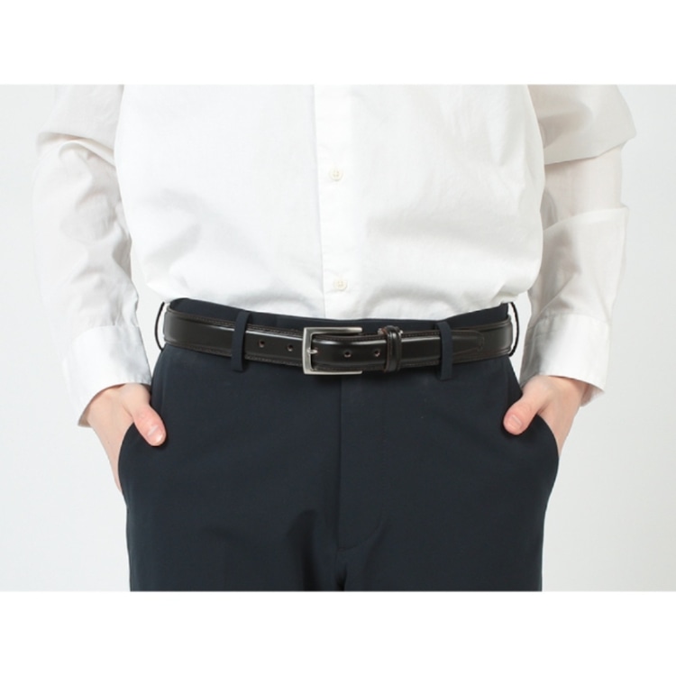 正統派の剣先と繊細な20番手ステッチを施したドレッシーな佇まいは高級感ある真鍮鋳物のバックルと相まってシンプルな存在感を放ちます。