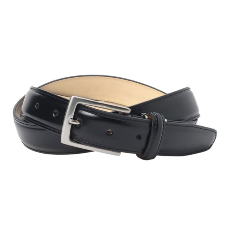 リーガルの代表的な靴に使用している当社スペックで特別に作られたコレクテッドグレインレザーを採用したドレスベルト。