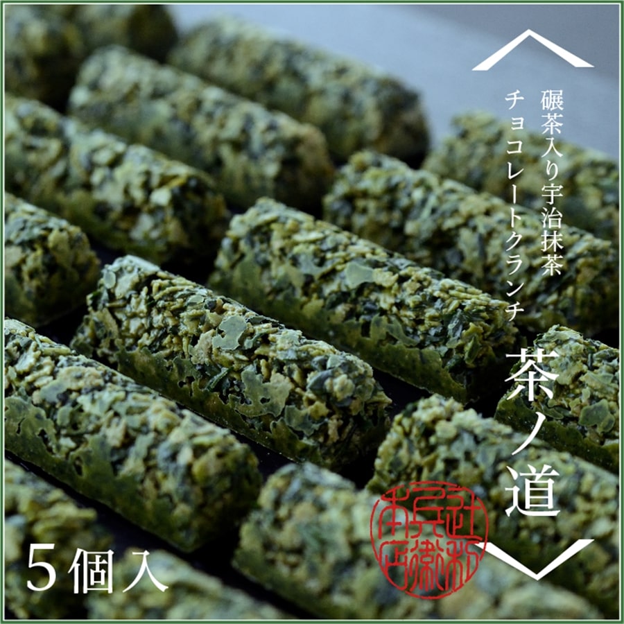 濃厚な宇治抹茶とホワイトチョコレートのクランチ。最後に碾茶葉を練りこみ仕上げた逸品です。外観もなだらかな宇治茶畑をイメージして造りあげた京都・宇治老舗茶舗ならではのスイーツです。