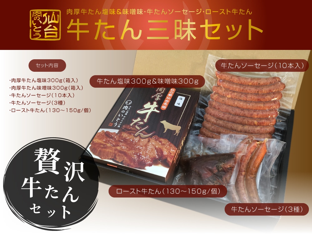 当店人気No.1の「肉厚牛たん」をはじめ、「牛たんソーセージ」や「ロースト牛たん」をお楽しみいただけます。