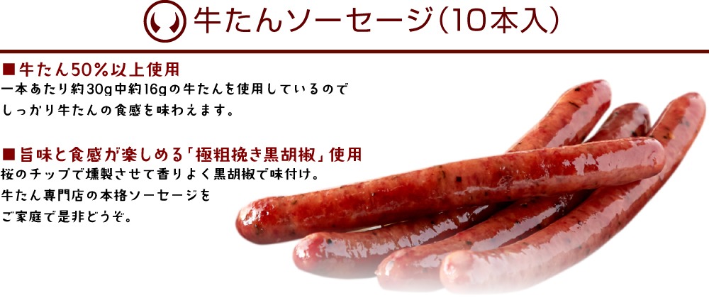 ウインナーソーセージ【牛たん入りソーセージ(黒胡椒入り)】 |