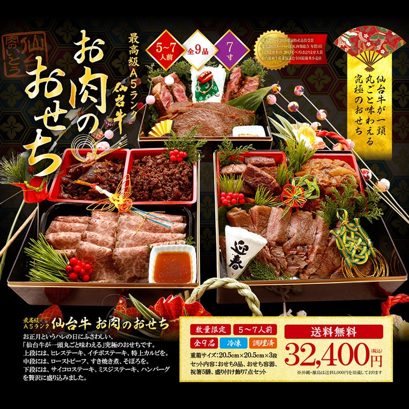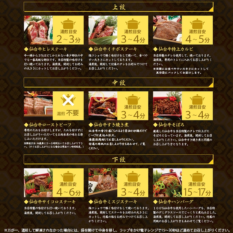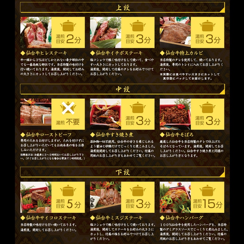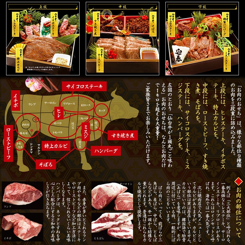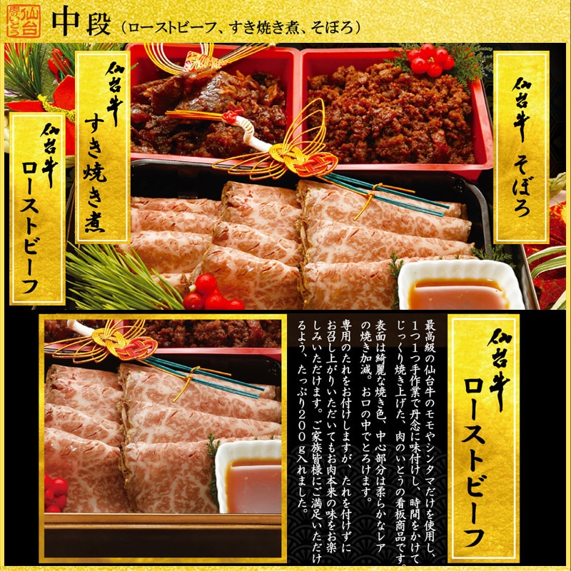 | 商品名 | 仙台牛お肉のおせち(三段重) |
