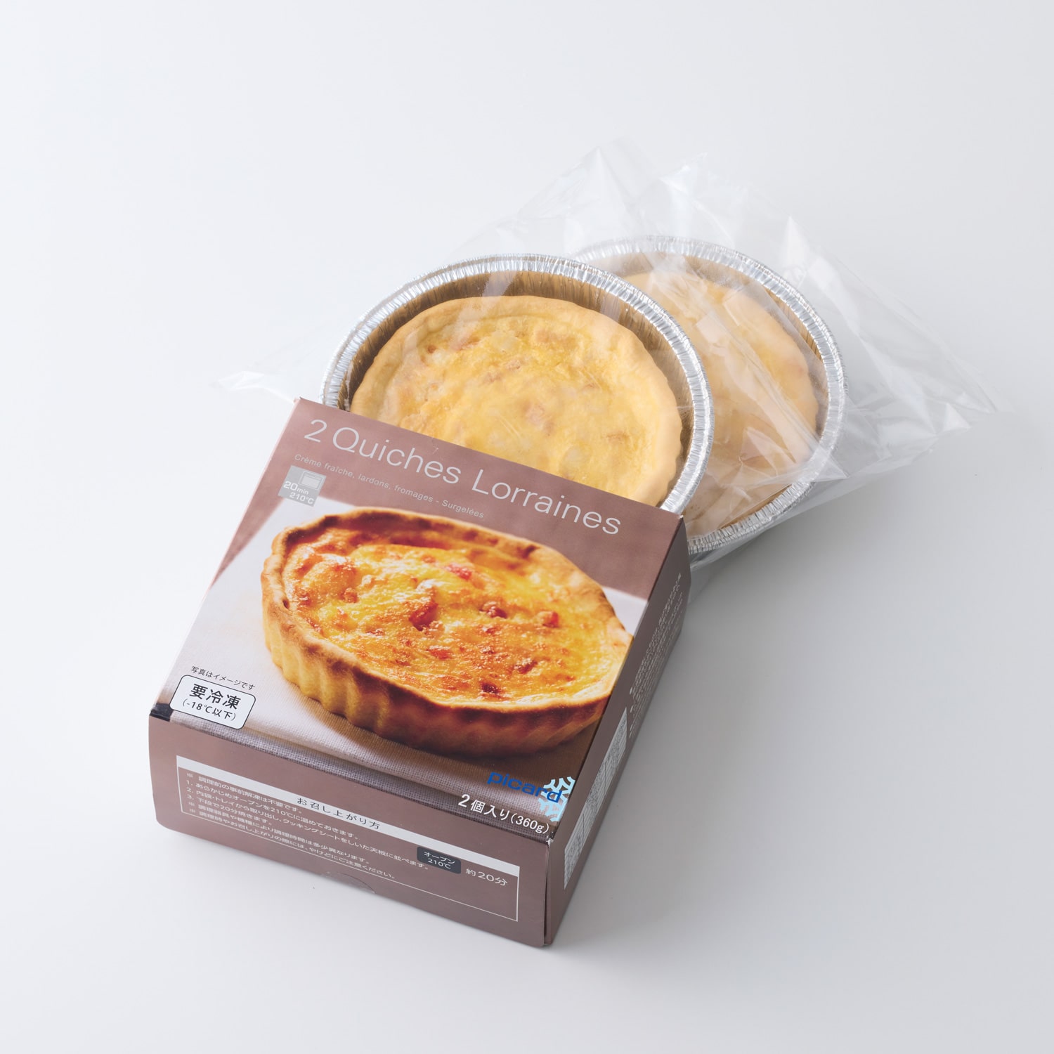 小麦粉、ベーコン、生クリーム、鶏卵、バター、チーズ、食塩、香辛料/発色剤(亜硝酸Na)、酸化防止剤(V.C)、(一部に小麦粉・卵・乳成分・豚肉を含む)
