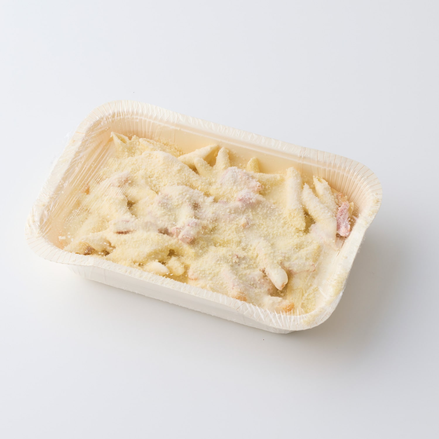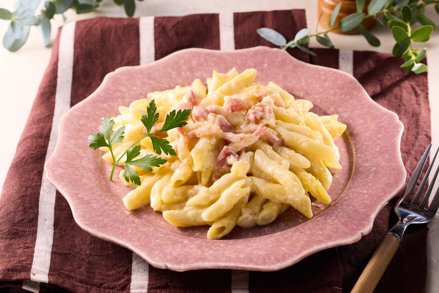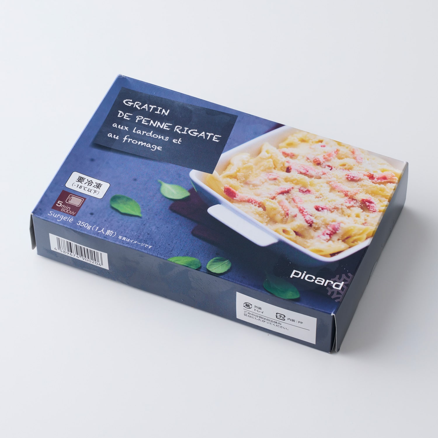 マカロニ、生クリーム、ベーコン、チーズ、玉ねぎ、牛乳、チキンブイヨン、ホワイトルウ、オリーブオイル、バター、食塩、香辛料/乳化剤、発色剤(亜硝酸Na)、酸化防止剤(V.C)、(一部に小麦・乳成分・鶏肉・豚肉を含む)
