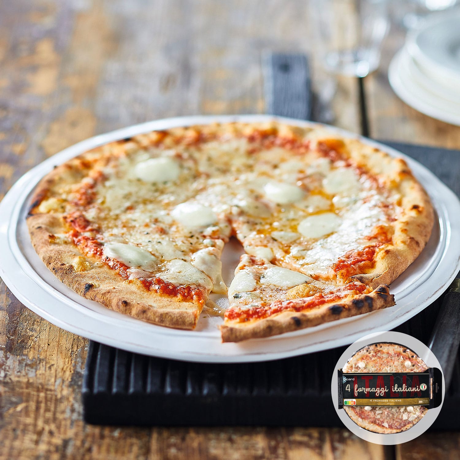 イタリア産のモッツアレラ、ゴルゴンゾーラ、アジアーゴ、グラナパダーノの4種類のチーズを使用したイタリアンピッツァです。