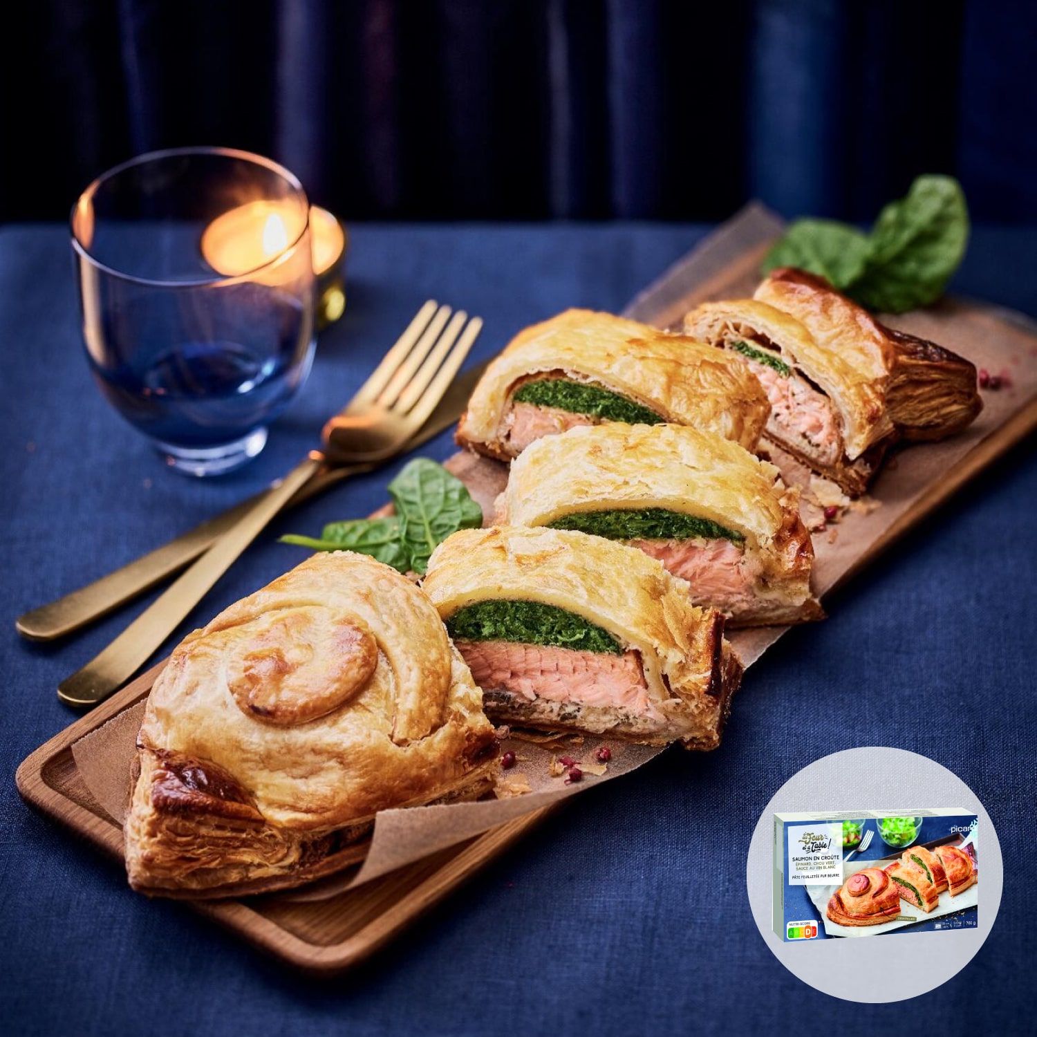 タイセイヨウサケ、小麦粉、バター、ほうれん草、キャベツ、乳等を主要原料とする食品、クレープ生地(小麦粉、牛乳、全卵液、そば粉、食塩)、白ワイン、全卵液、エシャロット、玉ねぎ、食塩、白こしょう