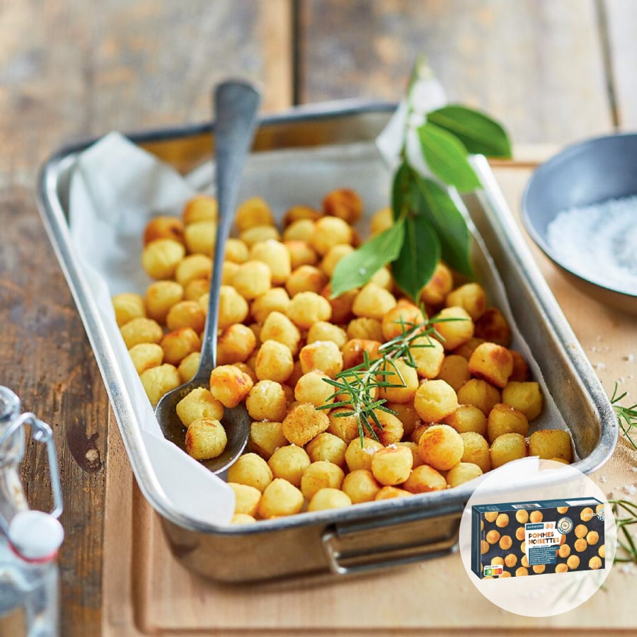 魚の形が食卓を盛り上げるサーモンのパイ包み焼き、前菜にピッタリなトマトとモッツァレラチーズのミニパニーニ バジルソース、おつまみに便利なチキンナゲットやジャガイモのノアゼット、芳醇な小麦の香りのミニバゲット、解凍するだけで楽しめる本格マカロンをセットにしました。食事からデザートまで楽しめる豪華なセットです。
