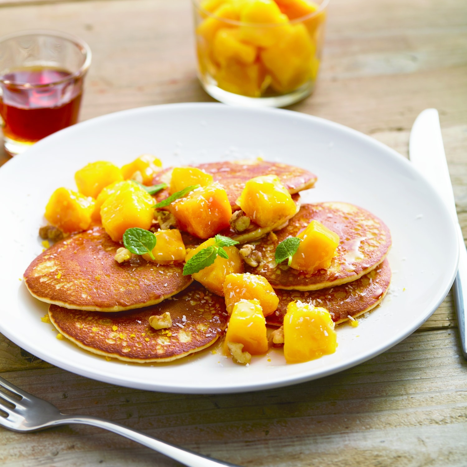 凍ったままのパンケーキを袋から取り出し、重ならないようにお皿に並べます。