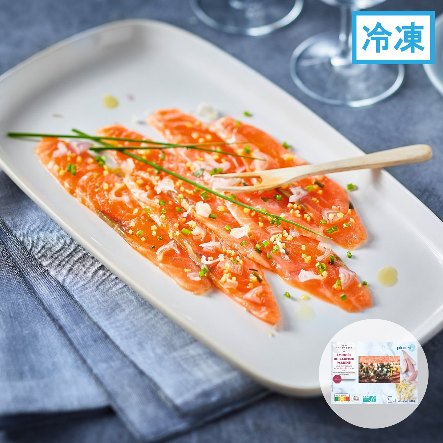 サーモン、エシャロット、オリーブ油、レモンピール、シブレット 、食塩