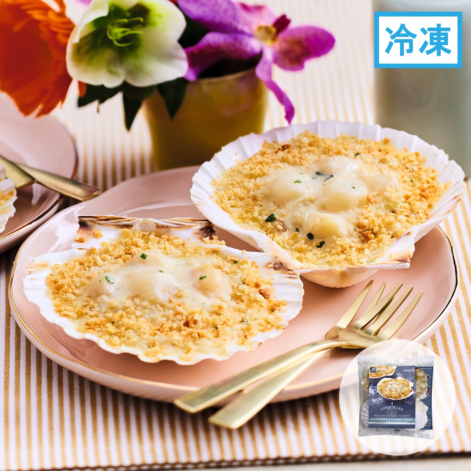 イタヤガイ貝柱、クリーム、玉ねぎ、白ワイン、バター、オニオンパウダー、エシャロット、脱脂粉乳、小麦粉、コーンスターチ、食塩、パセリ、卵白粉(卵を含む)、白こしょう、パン粉