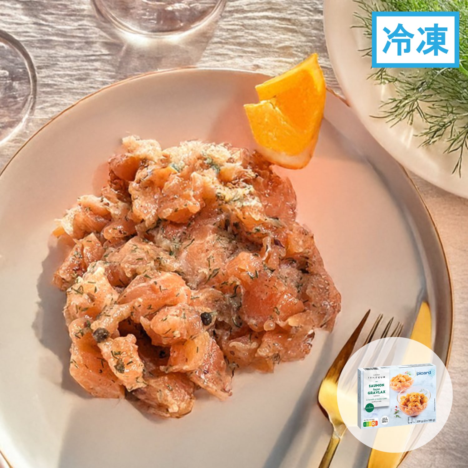 タイセイヨウサケ、砂糖、食塩、ディル、ピンクペッパー、白こしょう