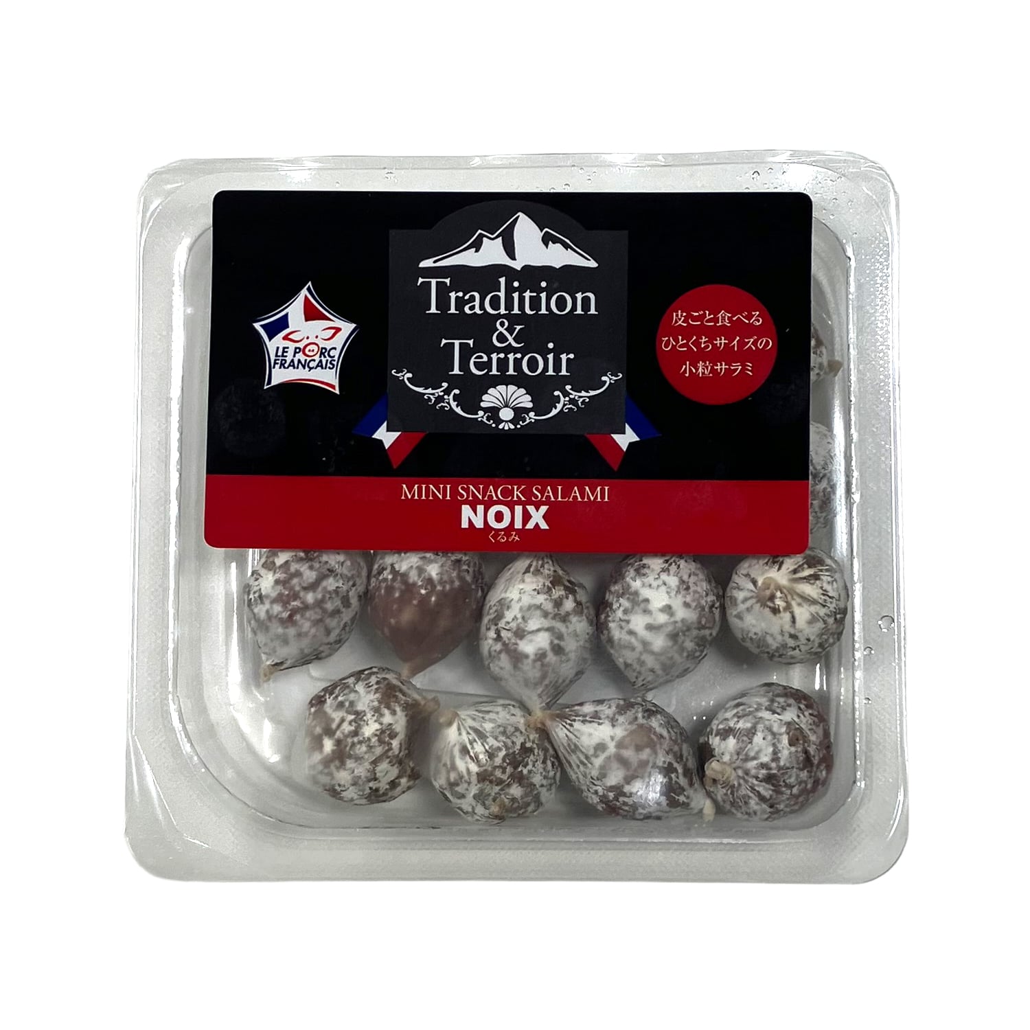 豚肉、くるみ、乳糖、食塩、香辛料、砂糖、デキストロース、にんにく/発色剤(硝酸K、亜硝酸Na)、(一部にくるみ・乳成分・豚肉を含む)