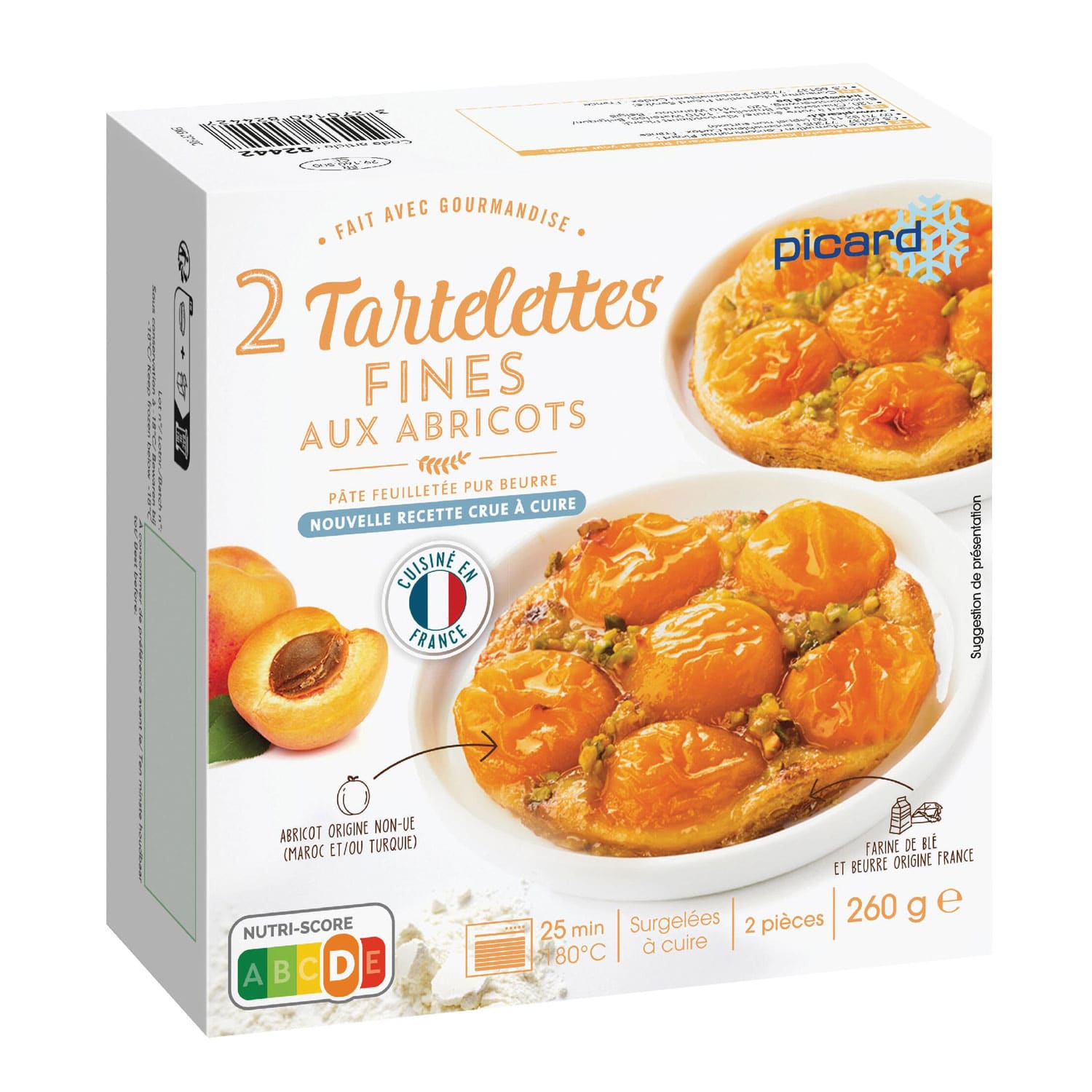 アプリコットのシロップ漬け(アプリコット、砂糖)、小麦粉、バター、アプリコットジャム(アプリコット、砂糖、濃縮レモン果汁)、砂糖、ピスタチオ、食塩/ゲル化剤(ペクチン:オレンジ由来)