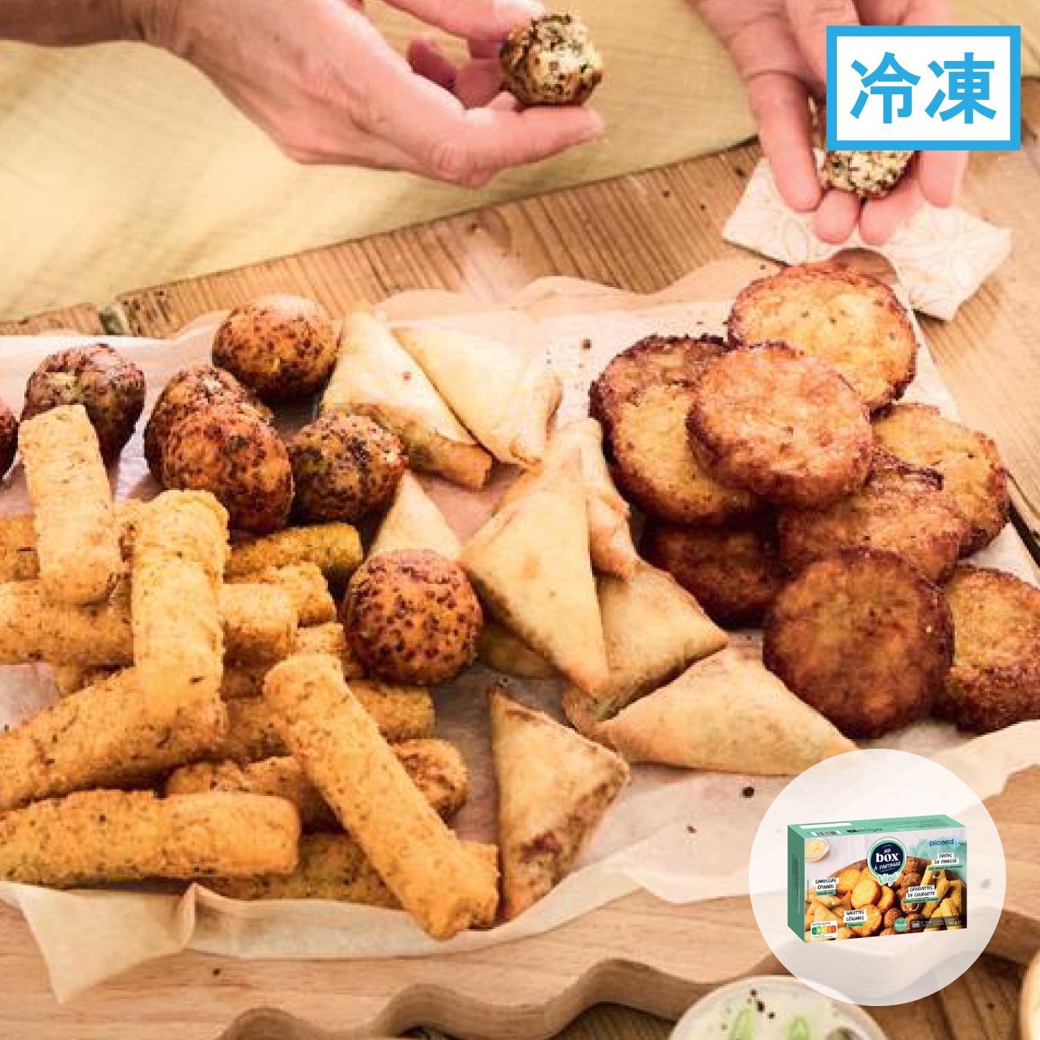 【サモサ】ほうれん草、ナチュラルチーズ(山羊乳)、小麦粉、全卵液、はちみつ、でん粉、小麦繊維、卵白粉、香辛料、食塩、植物油脂、全卵粉、揚げ油(植物油脂)/乳化剤