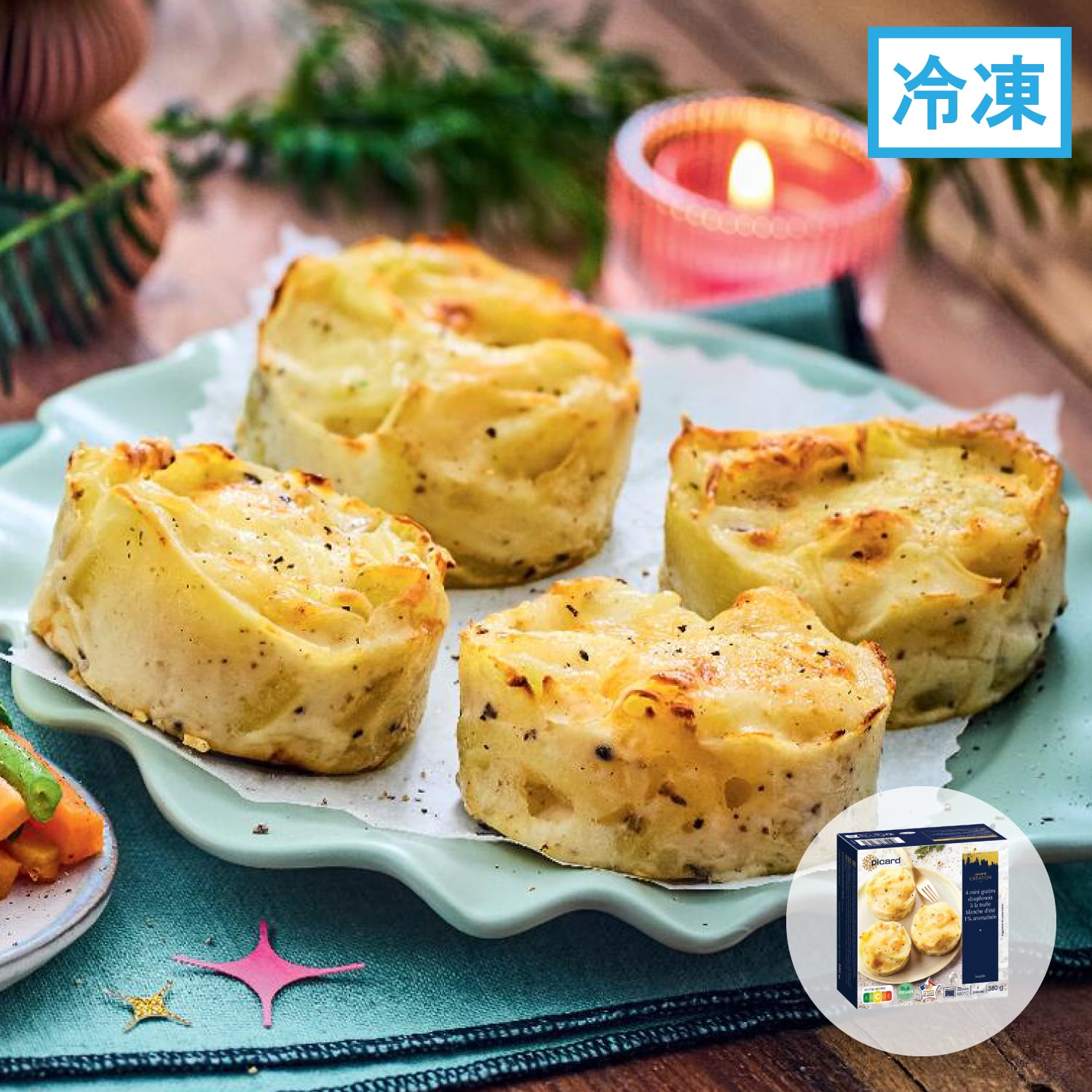 味付けじゃがいも(じゃがいも、食塩)、低脂肪牛乳、チーズ調整品(ナチュラルチーズ、バター、でん粉、食塩)、クリーム、ナチュラルチーズ、でん粉、トリュフ調整品(トリュフ、トリュフ煮汁)、にんにく、黒こしょう/香料