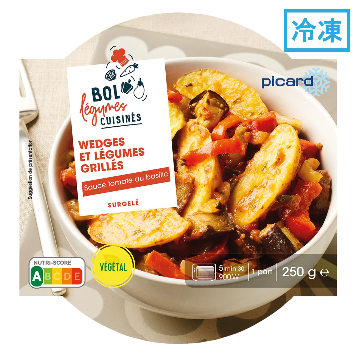 グリルじゃがいも(じゃがいも、食塩)、トマト・ジュース漬け、グリル赤パプリカ、グリルなす、トマトピューレー、素揚げ玉ねぎ、玉ねぎ、植物油脂、バジル、米粉、食塩、白こしょう