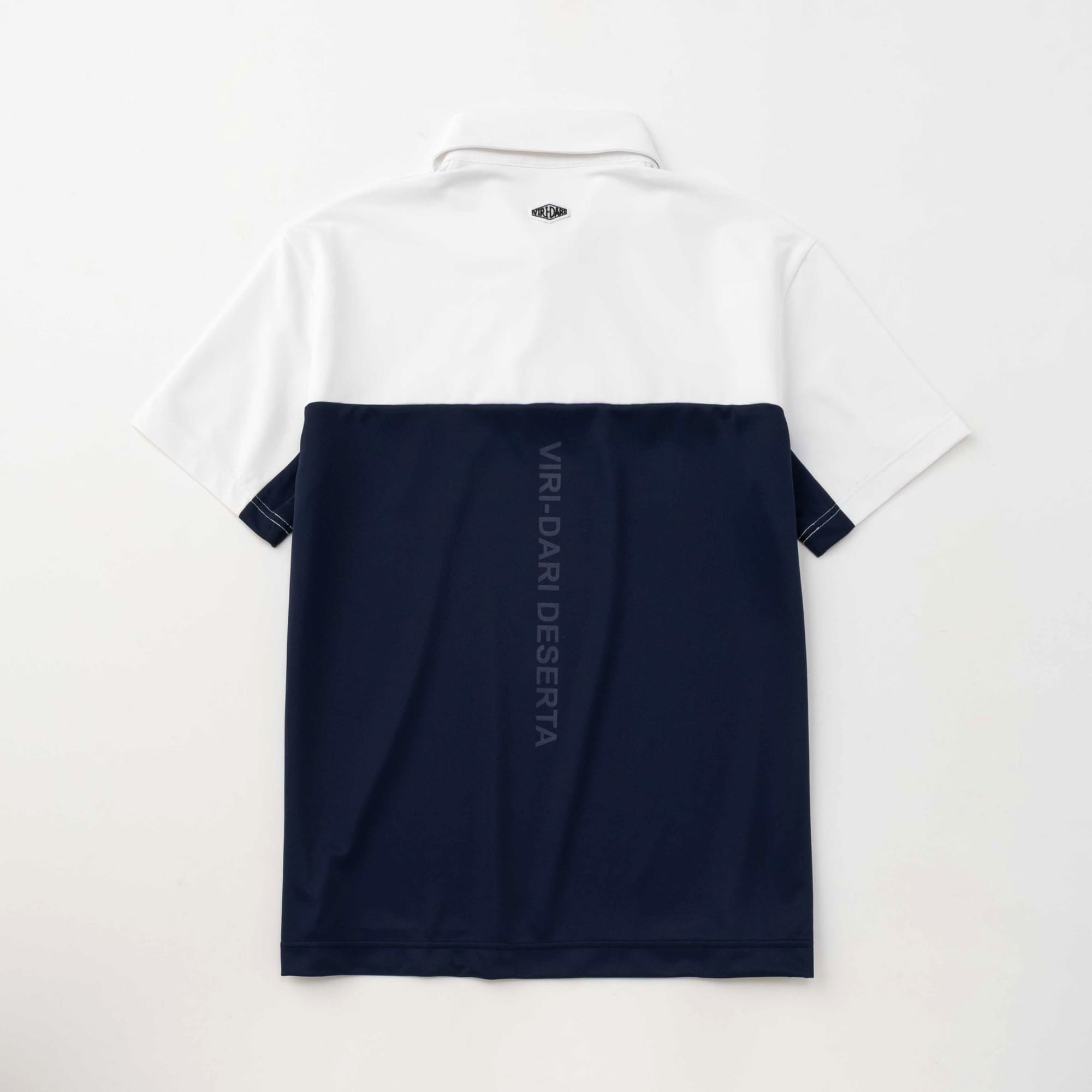 吸水速乾・UPF50+素材を使用し、真夏のラウンドでも快適な着心地をキープ。 上下で素材を切り替えた設計により、さらりとした肌触りと上品な印象を両立しています。 程よくゆとりのあるシルエットで、スイング時の動きを妨げない設計。 控えめなロゴとトーナルプリントが、シンプルながら印象に残る一枚です。