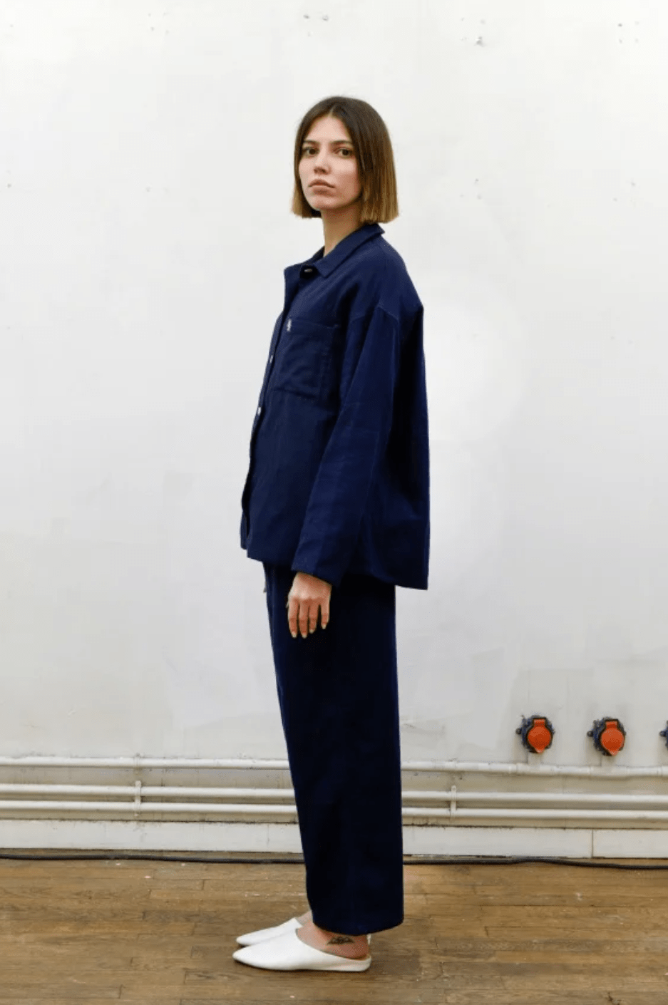 スタンダードなフラットカラーシャツは余計なディテールを排除したシンプルなデザイン。